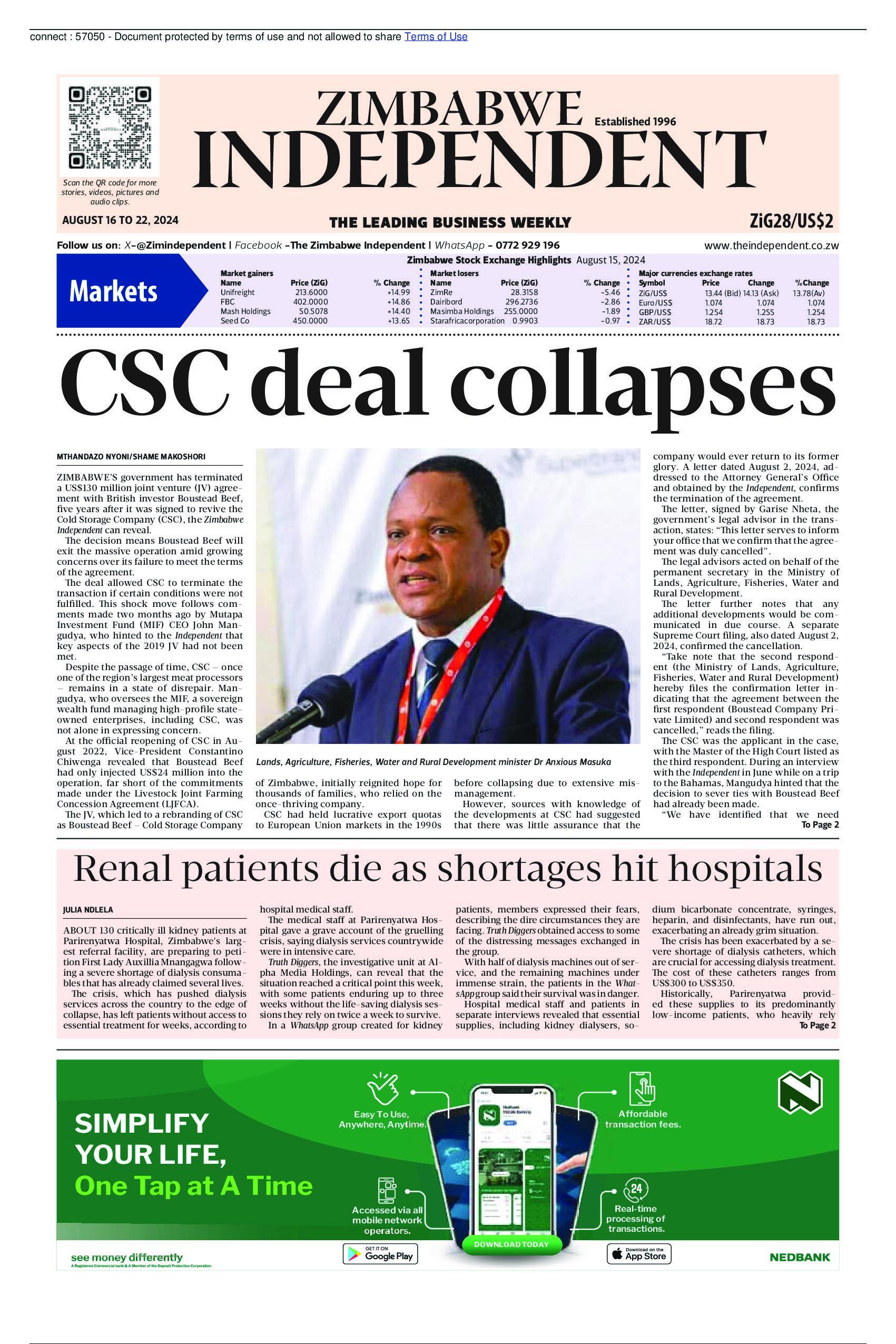 ZIMBABWE INDEPENDENT 16 08 2024